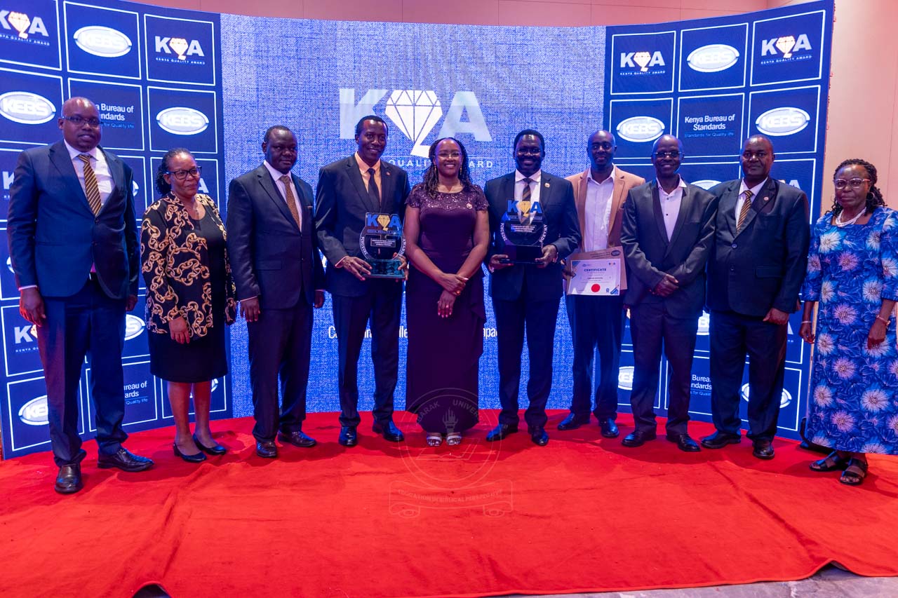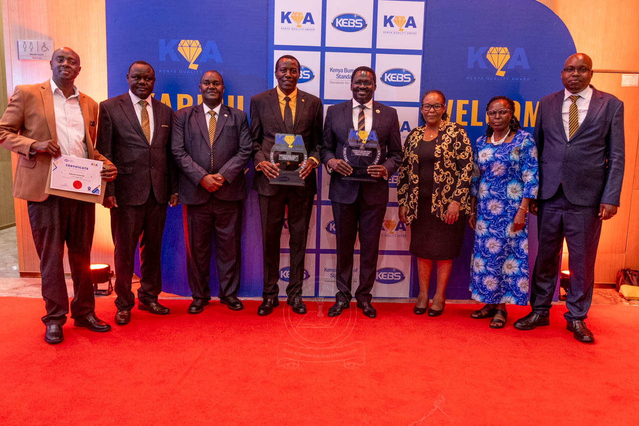 To receive these national honours, the Vice-Chancellor, Prof Henry K. Kiplangat, was present, accompanied by members of the University Management Board. The high-profile event, organized by KEBS, was graced by national dignitaries, including the permanent Secretary for the Ministry of Investments, Trade & Industry.