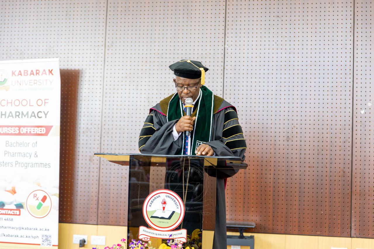 The event was officially opened by Dr. Titus Suge, Dean School of Pharmacy, alongside members of the University Management Board, the School of Pharmacy faculty, and invited guests from the pharmaceutical industry and the Pharmaceutical society of Kenya (PSK). In his address, the dean commended the graduands for their perseverance and reminded them of the sacred trust placed upon pharmacists in safeguarding public health. The ceremony also featured remarks by Dr. Lydia Momanyi and Dr. Achoka rpresenting PSK, and a guest address by Dr. Nelson Odhiambo, Head of Quality at Dawalife Sciences, who emphasized quality assurance, professionalism, and innovation in pharmaceutical practice.