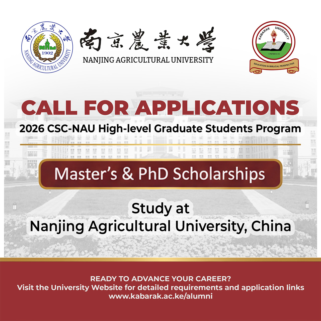 Nanjing Agricultural University (NAU), China, has announced the 2026 Chinese Government Scholarship High-level Graduate Students Program.