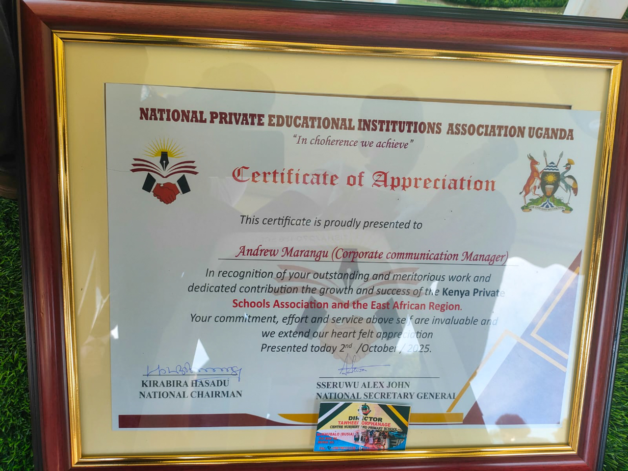 In a special highlight, Mr. Marangu received a Certificate of Appreciation in recognition of his outstanding contribution to the growth and success of the Kenya Private Schools Association and the East African region.