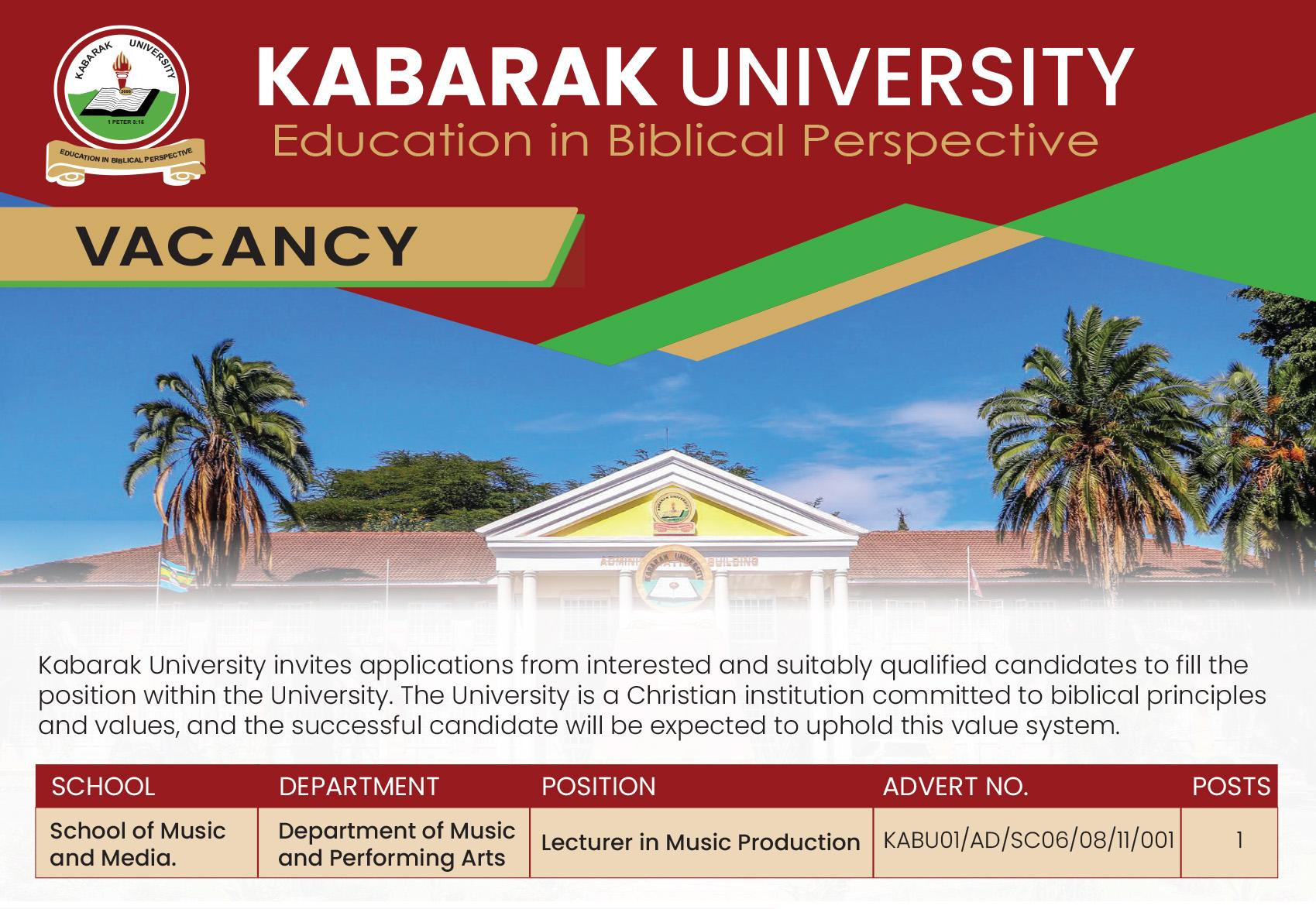 Kabarak University invites applications from suitably qualified candidates to fill the following position. As a Christian institution founded on Biblical principles and values, the successful candidate will be expected to uphold and live by th...