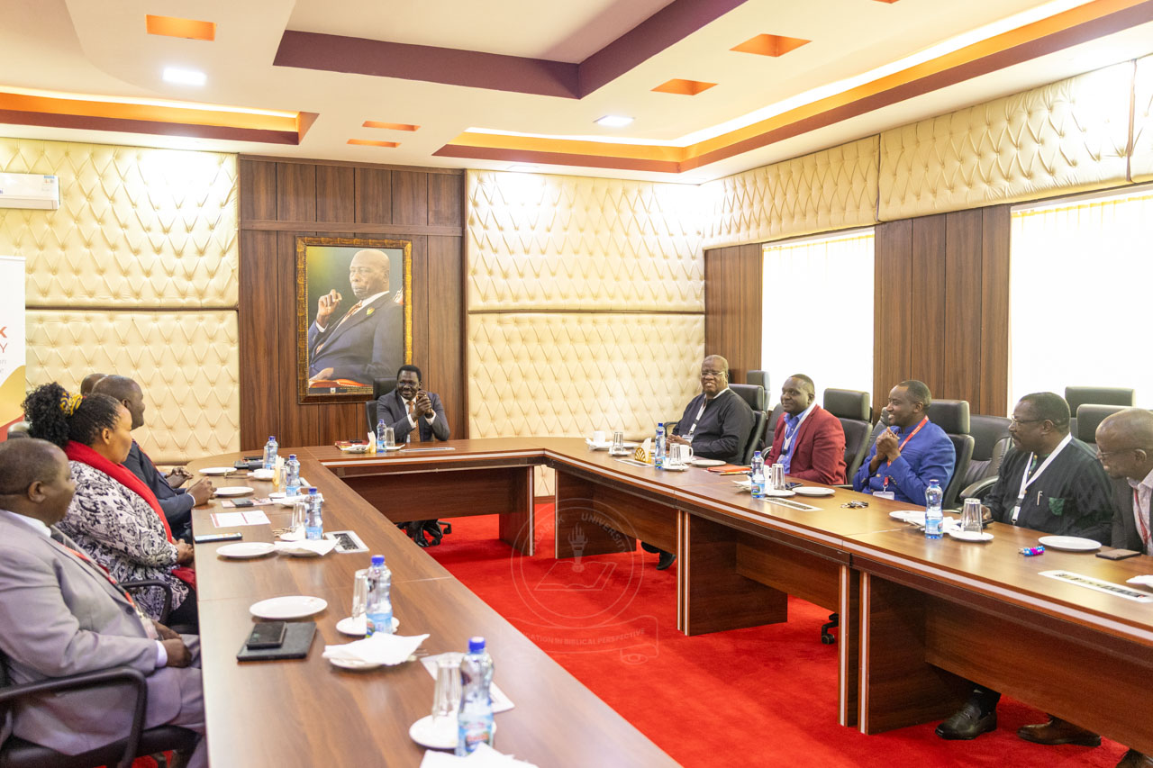 The day began with a warm courtesy call to the Vice-Chancellor, Prof. Henry Kiplangat, in the University Boardroom. Guest speakers, including Prof. Madimabe Geoff Mapaya (University of Venda), Artist Mackinlay Mutsembi, Dr. Ayo Oluranti, Dr. Fredrick Mbogo, engaged in a brief meeting with the VC before proceeding to the Sawia Auditorium for the official opening ceremony.