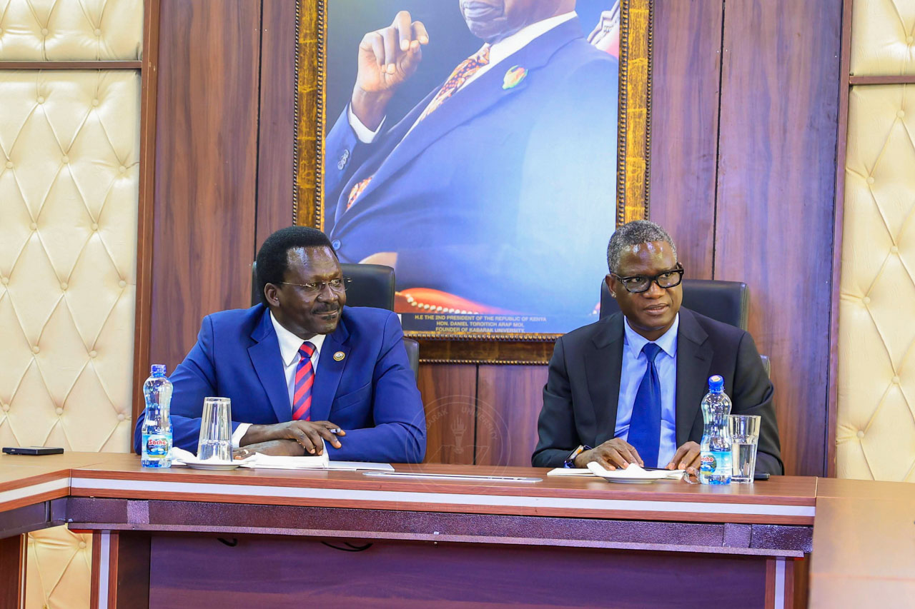 Kabarak University today hosted a high-level delegation from the University of Venda (UNIVEN), South Africa, led by Prof. Bernard Nthambeleni, Vice Chancellor of the University of Venda. He was accompanied by Prof. Madimabe Geoff Mapaya, Professor in the Department of Arts and Social Sciences. The delegation was received by Kabarak University Vice Chancellor, Prof. Henry K. Kiplangat, accompanied by members of the University Management and faculty.